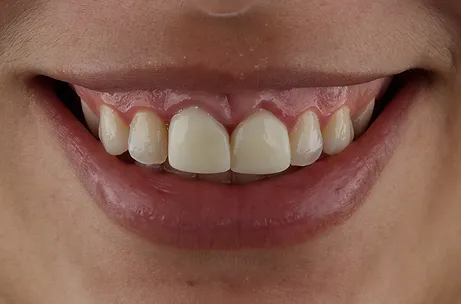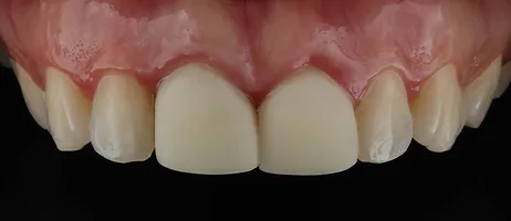 Estava diante de um grande desafio: devolver a arquitetura gengival alterada pelas facetas inadequadas já presentes tendo que realizar um implante dentário na região de incisivo central de uma paciente jovem, com sorriso gengival, filha de dentista e que só queria mudar esses dois dentes.